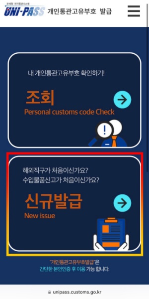 1. 관세청 개인통관고유부호 발급시스템에 접속합니다.
