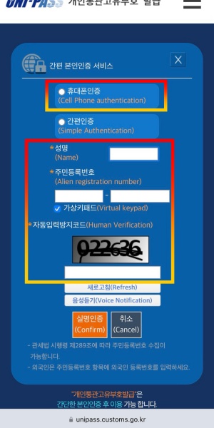 개일통관고유번호를 발급하기에 앞서 준비물이 필요합니다. 공동 금융인증서 모바일에서는 인증서가 필요합니다.