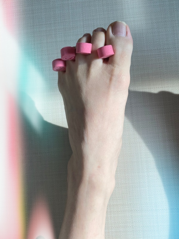 2.손으로 발가락을 하나씩 잡고 천천히 구부려줍니다.